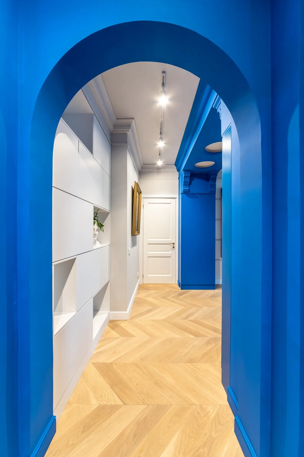 Для оформления коридора были выбраны трековые светильники Splay от Elektrostandard™. Они не только обеспечивают дополнительное освещение, но и организуют световое зонирование пространства, подсвечивая рабочие зоны . Эти светильники можно легко поворачивать, меняя направление светового потока, что делает их невероятно функциональными .